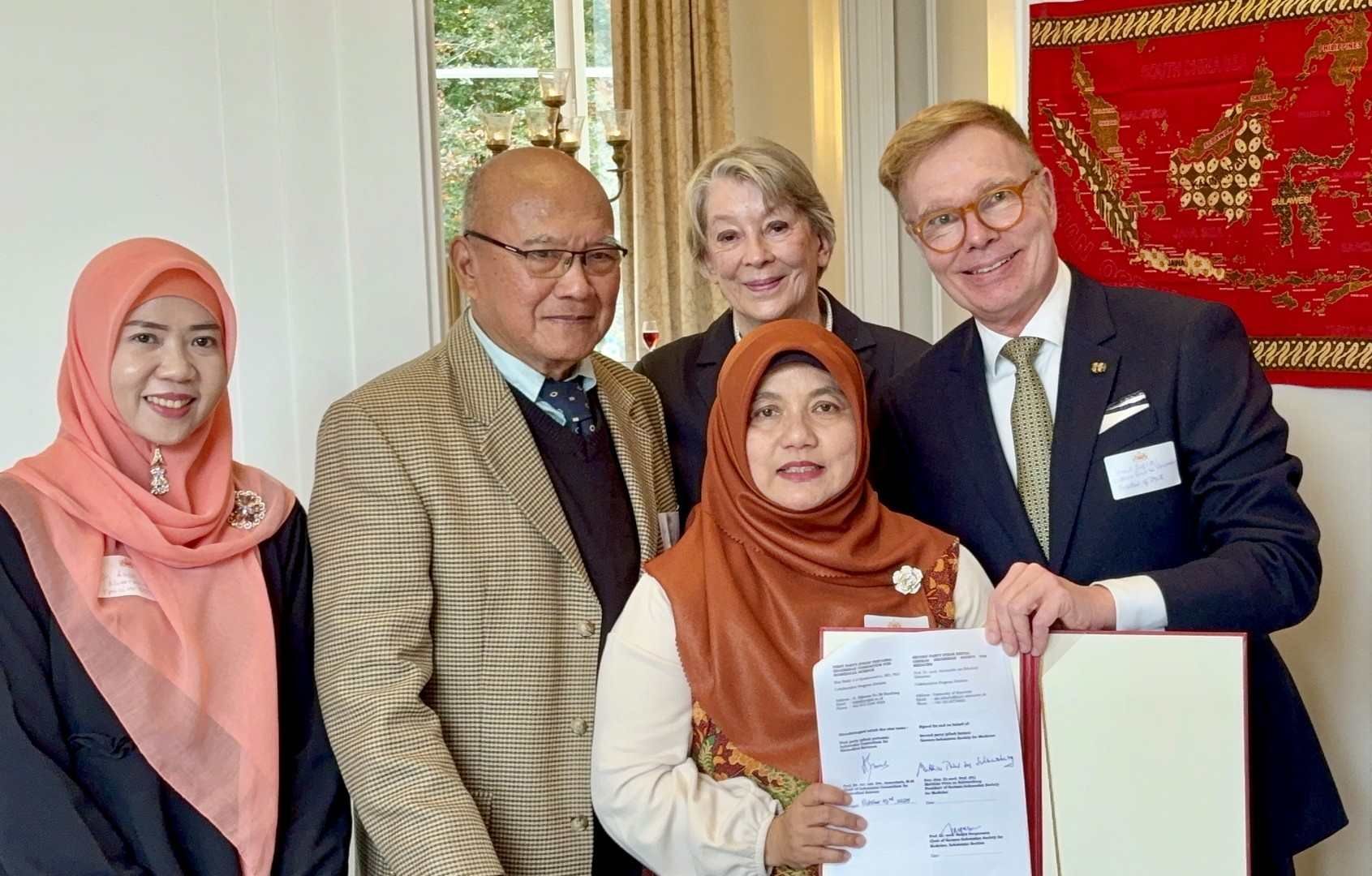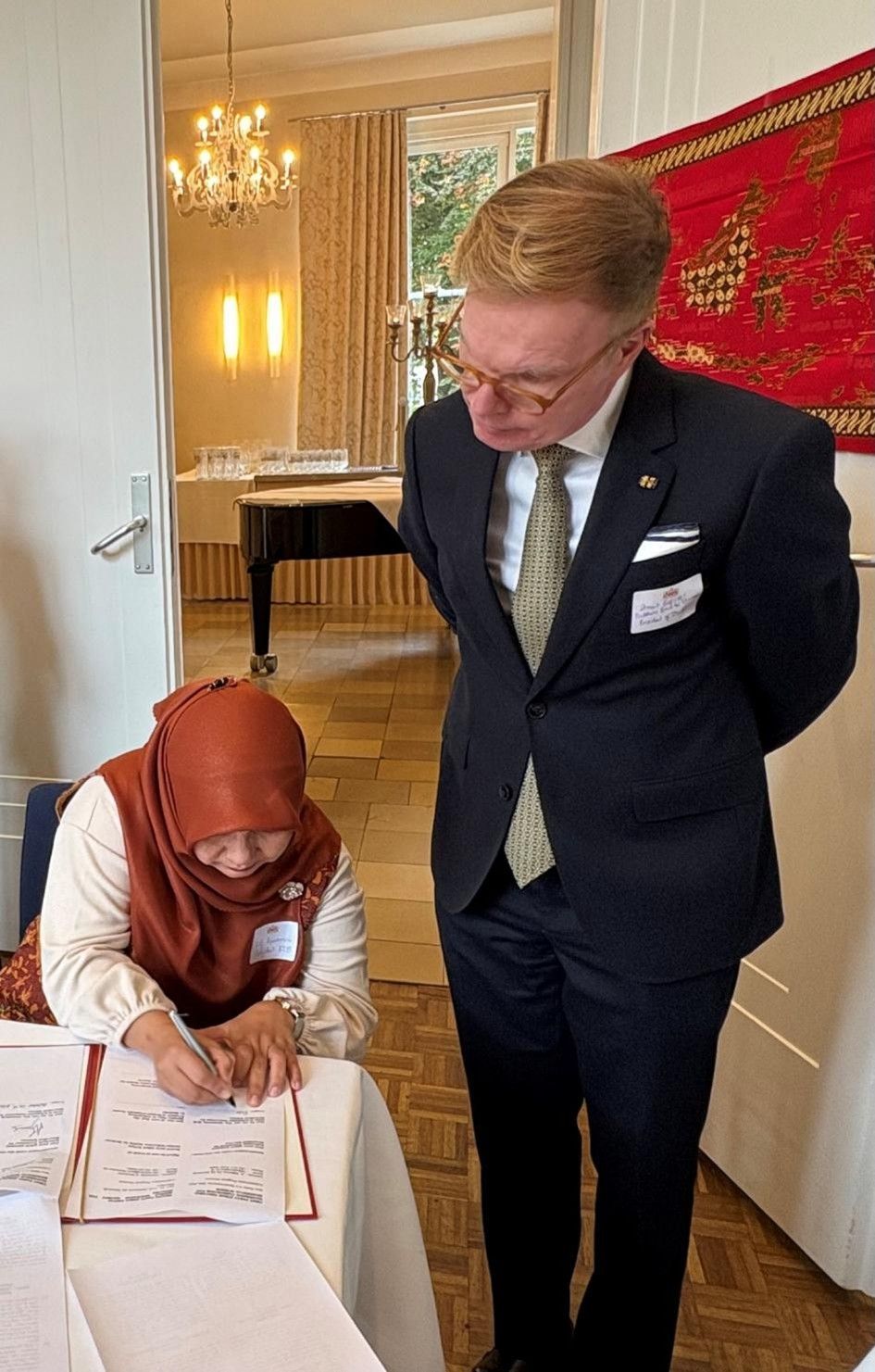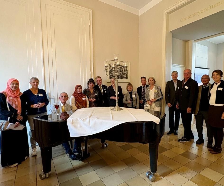 From left to right: Dr. Anisa Khaerunnisa, Treasurer of KIBI; Prof. Barbara Kahl, Institute of Medical Microbiology, University Hospital Münster UKM; Prof. Ralph Lellé, former Director of the Gynaecological Cancer Centre, UKM, Board Member of DIGM; Prof. Asmarinah, KIBI President; Dr. Elke Williamson, Representative of Deanery and Faculty Director of Medical Faculty University Münster; Docent Prof. (PL) Matthias Prinz zu Schwarzburg, DIGM President; Prof. Antoinette am Zehnhoff-Dinnesen, DIGM Vice President; Martina Hofer, International Office University Münster; Dr. Volker Hasse, HC Managementberatung; Wilma Heim, Past-Governor Rotary District 1870; Prof. Matthias Sigler, Director of Clinic for Pediatric Cardiology, UKM, Board Member of DIGM; Prof. Michael Zitzmann, Department of Clinical and Surgical Andrology, Centre of Reproductive Medicine and Andrology (CeRA), UKM; Prof. Rasjid Soeparwata, President of DIGM Indonesia; Andrea Bockey